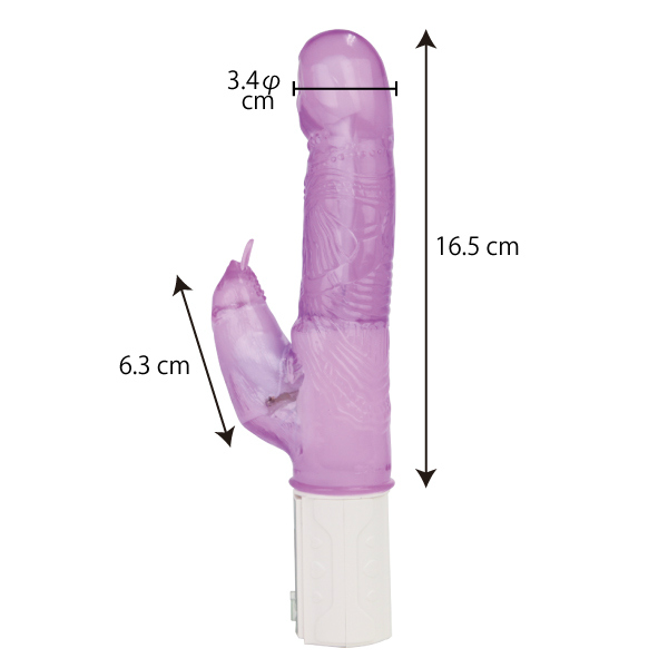 「2人で選ぶのはこんなバイブ」は、初心者でも安心してお使い頂ける細身でロングサイズ。操作も簡単!無段階調節で自由自在に責めることができ、クリトリス責めが好きな女性に嬉しい一枚舌フリッターのクリバイブ付き!振動とスイングで刺激たっぷり!愛し合う2人がさらに愛を深めるのに最適なパープルカラーの日本製バイブです。単4電池×3本使用。