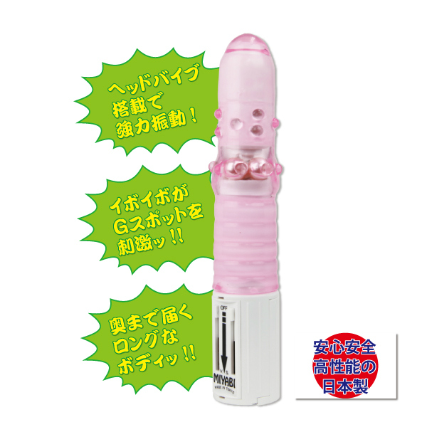 振動を奥底まで伝えるロングボディ!パープルカラーのストレートバイブ「イボマラ番長」。スイング機能とヘッドバイブを搭載!そして、ボディにはGスポットを刺激する無数のイボ突起!さらに、中央部分のパールが刺激のアクセントに!一度使ってしまうと、アナタはもう番長の虜になること間違いなし!誰もが安心安全に使用できる日本製!初心者から上級者まで楽しめるバイブになっています!単4電池×3本付属。