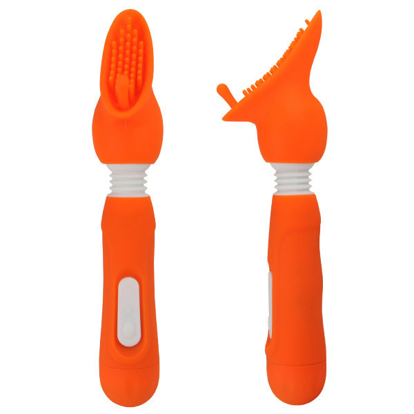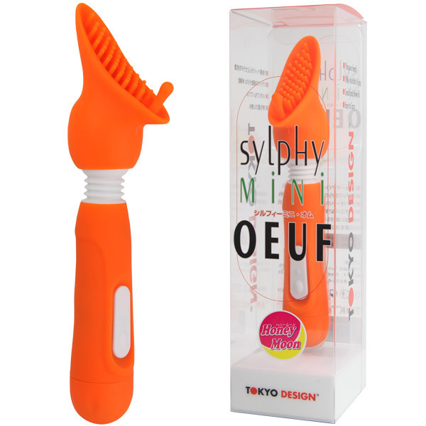 ニューデザインで、新たな快感を!細長いブラシ型ヘッドのローター「シルフィーミニ・オム ハニームーン」オレンジ。ヘッド部分に柔らかい無数の突起と、クリ用突起を配置!ネック部分が自在に曲がるので、女性器にぴったりとフィットします。振動機能は、6パターンの可変バイブレーションを搭載!ソフトな振動ですので、初心者の方でも安心です。生活防水仕様&ブラシ部分は取り外せるので、メンテナンスも簡単です。単4電池×2本付属。
