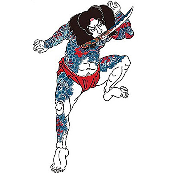 本格的な浮世絵デザインを手軽にボディメイク!貼るだけで簡単に二重彫りのような感覚を楽しめる刺青シール。水泳の達人と言われる水滸伝の張順の名シーンをそのまま抜粋!手のひらサイズなので女性でも十分お使い頂けます。水にも強く2〜3日は剥がれないので、お祭りやイベントにもピッタリ!専用のクレンジングで簡単に剥がせるのも嬉しいタトゥーシールです。