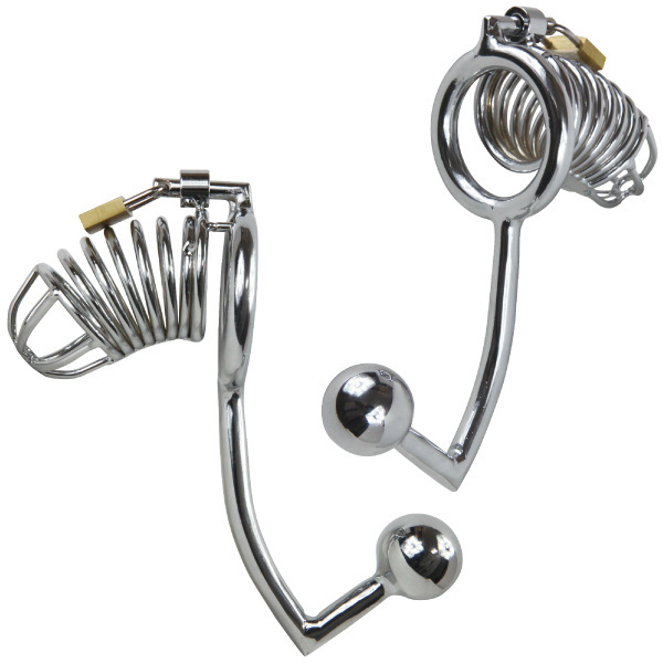 コアなSMファン必見!ペニスゲージとφ3cmのアナルボールが合体した金属製の貞操管理檻。さあ、南京錠を締めれば楽しい射精&排泄管理の始まりです!勃起したくてもできない状況を作り出すM男性向けSM貞操帯の鍵は、もちろんご主人様持ちでしょう。少しでもペニスが大きくなろうとすれば、つられてアナル側も食い込む仕掛け!自分の意思とは裏腹に生まれる快感刺激に耐えてください。南京錠1セット、収納用袋付き。