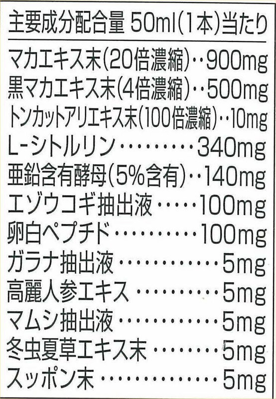 栄養機能食品配合の「マカ・マックス メガ20000」!男性の強壮用ドリンクです。主要成分はマカ・黒マカエキス末やL-シトルリン等。