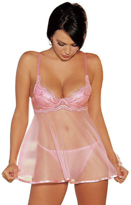 スカラップレースカップベビードール&Gストリング S ピンク