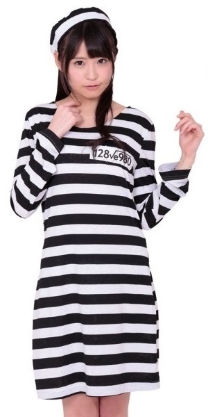 ハロウィンや仮装パーティーに大活躍する囚人風コスチューム。●囚人定番の白黒ボーダー柄●頭からすっぽり被るワンピース(長袖)●帽子・固定用ピン2本もセット。悪さを感じさせない、可愛いプリズナーガールに変身できちゃうワンピースタイプのコスプレ衣装です。