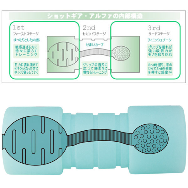 性感をエクササイズ!スタイリッシュなメンズブランド「ショットギア」のオナホール。●吸い付くような柔らかボディ●医療用グレードの高品質素材を使用●肉ヒダ→細ヒダ→無数イボの3ゾーン構造●優れた抗菌性のカテキン成分配合●安心安全な日本製。メリハリのある3つのゾーンで異なる刺激を味わえるオナホール!アルファは初心者の方でも使いやすく快感を得やすい鍛錬型タイプです。