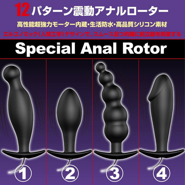 前立腺まで響き渡る超強力振動!エルゴノミック(人間工学)デザインのアナルグッズ「スペシャルアナルローター1」。●全長11.8cm、挿入部最大径3.3φcm●ボールヘッド×大きく膨らむボディ●底部にストッパー付き●高品質シリコン素材の滑らかボディ●12パターンの超強力振動機能を搭載●電池:単四電池×2本使用(別売り)●生活防水仕様。エルゴノミックデザインでスムーズ挿入&的確に前立腺を刺激する「プリティラブ」シリーズのアナルローター!先端ボールのくびれから大きく膨らんだボディが腸内で抜群の存在感を発揮します。