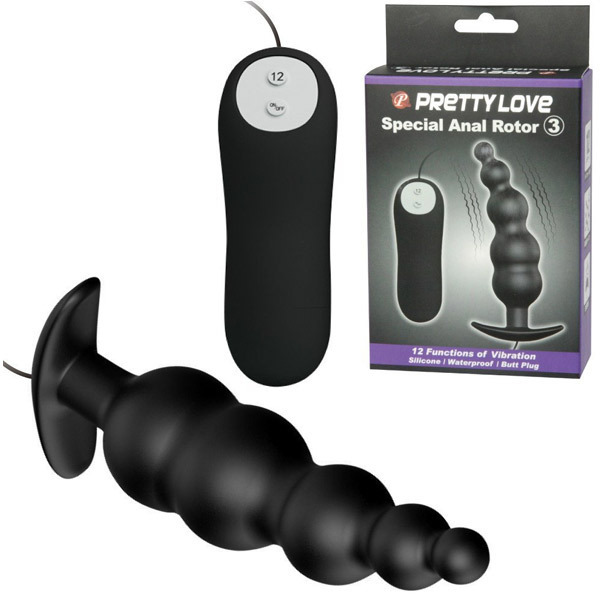 前立腺まで響き渡る超強力振動!エルゴノミック(人間工学)デザインのアナルグッズ「スペシャルアナルローター3」。●全長11.7cm、挿入部最大径3φcm●徐々に太くなる5連の段々ボディ●底部にストッパー付き●高品質シリコン素材の滑らかボディ●12パターンの超強力振動機能を搭載●電池:単四電池×2本使用(別売り)●生活防水仕様。エルゴノミックデザインでスムーズ挿入&的確に前立腺を刺激する「プリティラブ」シリーズのアナルローター!大きさの異なる5連団子ボディが出し挿れ時に抜群の存在感を発揮します。
