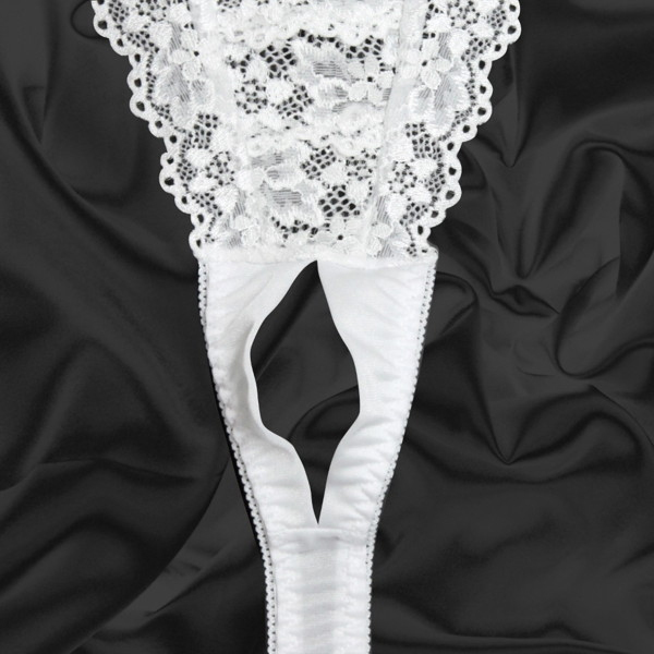 HOME > ランジェリー > オープン ブラ・ショーツ(穴あき) > トリコット生地フラワーレース脇紐オープンTバック ホワイト