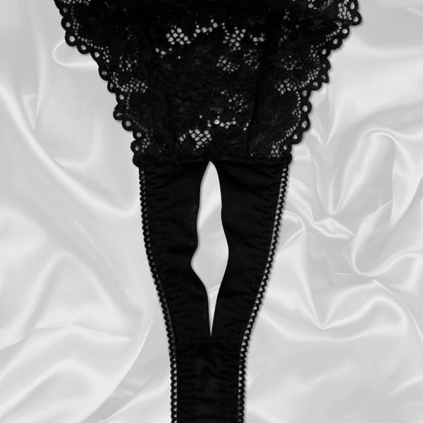 HOME > ランジェリー > オープン ブラ・ショーツ(穴あき) > トリコット生地フラワーレース脇紐オープンTバック ブラック