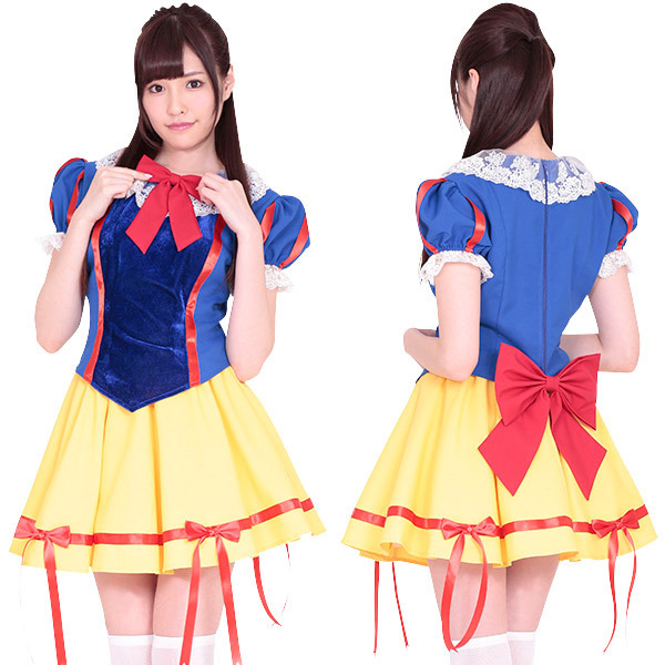 可愛すぎるスノープリンセスに変身♪クラシックなデザインのお姫様コスチューム。青、赤、黄色の定番カラーで仕上げたおとぎの国のヒロイン衣装♪トップスの襟に幅広レース&赤リボン、プリーツスカートには裾リボン、さらに大きめのバックリボンなど可愛いを凝縮!全てがラブリーな愛されプリンセスコスチュームです。※セット内容以外は付属しておりません。