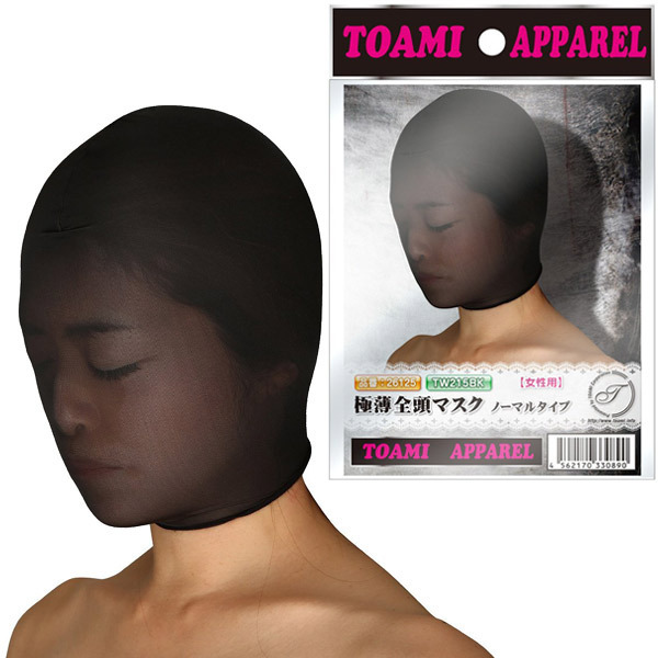 気軽にトライしやすい極薄素材♪絶妙な締め付け感のソフトSM向けフルフェイスマスク「極薄全頭マスク ノーマルタイプ」。顔全体を覆い辱める全頭マスクはハードプレイ寄りのSMグッズですが、透け感のあるストッキングのようなストレッチ素材を使用したこのマスクなら、完全に視界を奪ってしまうわけではなく、気軽に楽しめるので安心です。
