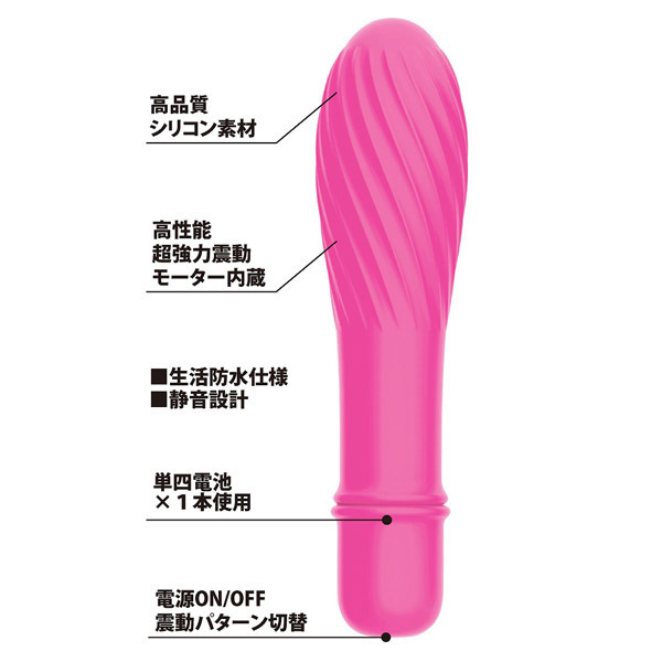 ハンディ電マ級の超パワー!キュートなねじれボディのスティックローター「プリティラブ キャンディスティック」。高品質シリコン素材のボディは程よい柔らかさで肌触りも抜群!キャンディのような美しいねじれカーブに、高性能な超強力振動モーターを内蔵、10パターンのバイブレーションを搭載しています。生活防水仕様&静音設計、電池式で使い勝手も抜群のミニマッサージャーです。単四電池×1本使用(別売り)。