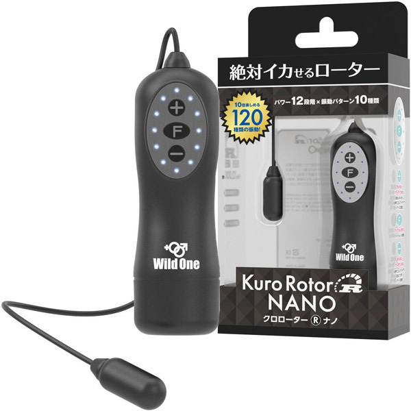 バイブ女子の声から誕生した『絶対イカせるローター』に小指サイズの「クロローターR NANO」が登場。直径10mmの小さなヘッドながらパワフルに振動するNANOモデル!小さいからこそ可能なピンポイント刺激でお好みの性感帯を的確に狙い撃ちするマイクロローター。スベスベな肌触りで優しく振動を伝えてくれる高級マット加工仕上げのボディは手に馴染みやすく、安心してデリケートな部分にお使い頂けます。12段階の強弱パワー&10種の振動パターンを備えた全120種の振動はボタンスイッチで操作も簡単!電源ON&パワーUPは+ボタン、電源OFF&パワーダウンは-ボタン、振動切り替えはFボタンで操作可能。内部のモーターは力強くも静音性に優れており、断線防止ケーブルや生活防水設計で時間や場所を選ばずお好きなシーンでお楽しみ頂けます。繊細かつ多彩な振動でひとりエッチにも愛撫にもマルチに使えるシングルローターです。単四電池×2本付属(動作確認用)。