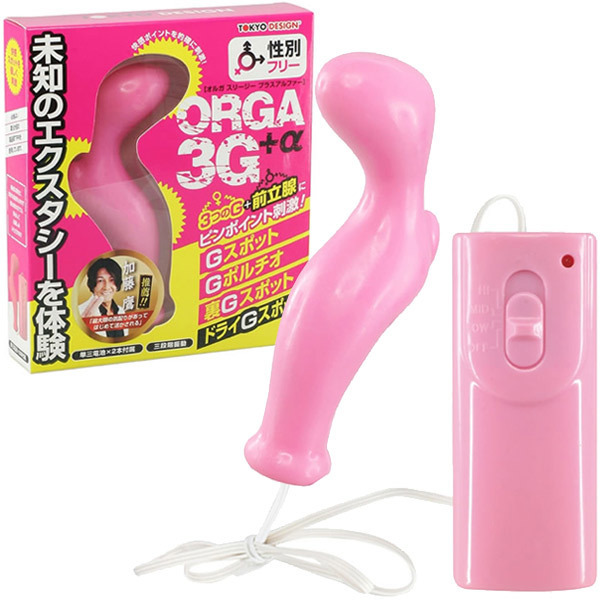 あのテクニシャンAV男優『加藤鷹』も推薦!Gスポット・ポルチオ・前立腺の快感ポイントを刺激するマルチなアナルバイブ「オルガ3G+α」。もっちりプニプニとした肌触りのTPR素材を使用し、滑らかな挿れ心地を実現!ゴールドフィンガーを模したかのような計算され尽くした個性的なフォルムが内部で絶妙にフィットして極上のエクスタシーを提供します。3つの快感ポイント+男性の前立腺にもフィットし、男女問わずに楽しめるバイブレーター。コード付きコントローラーはスライド式スイッチのシンプルな操作感!三段階強弱の振動パターンを操作できます。単三電池×2本付属。