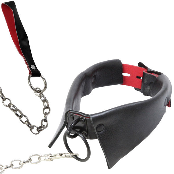 SMプレイの深淵へと導く!赤と黒のフェイクレザーが妖艶な『ABYSS』シリーズのSMグッズ「Abyss(アビス) チェーン付き調教首輪」。お散歩調教プレイに最適なチェーン付きの首枷!付け襟のような見た目でデザイン性もGOOD。材質はフェイクレザー・鉄、首周りは約35.5〜41.5cmまでサイズ調節可能、チェーンは長さたっぷり75cmです。※モデル着用のボンデージ、ストッキング等は付属しておりません。