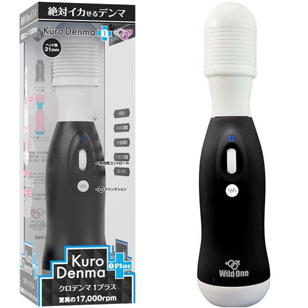 デンマの神が更にパワーアップして降臨!あの『絶対イカせる』強力電マが「クロデンマ1プラス」として登場。内蔵モーターの改良で振動力が17000回転へとグレードアップ!あらゆるニーズを満たす10種の振動パターンを搭載し、激しいだけでなくより柔らかな重振動とより繊細な微振動まで女性が求める甘くささやくような愛撫的な振動を実現しました。振動の強弱はダイヤル式の無段階コントローラーで自由自在に調整が可能。ヘッド径3.2Φcm対応のアタッチメントを装着可能なヘッド部分は、しなるように曲がるネック一体型の医療用シリコン製!汚れが気になったらすぐに水洗いできる生活防水仕様でいつでも清潔です。また、電池ボックスも改良され、底部を回して電池を入れるだけの簡単仕様でさらに使いやすくなりました。
