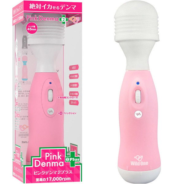 デンマの神が更にパワーアップして降臨!あの『絶対イカせる』強力電マが「ピンクデンマ2プラス」として登場。内蔵モーターの改良で振動力が17000回転へとグレードアップ!あらゆるニーズを満たす10種の振動パターンを搭載し、激しいだけでなくより柔らかな重振動とより繊細な微振動まで女性が求める甘くささやくような愛撫的な振動を実現しました。振動の強弱はダイヤル式の無段階コントローラーで自由自在に調整が可能。ヘッド径4.5Φcm対応のアタッチメントを装着可能なヘッド部分は、しなるように曲がるネック一体型の医療用シリコン製!汚れが気になったらすぐに水洗いできる生活防水仕様でいつでも清潔です。また、電池ボックスも改良され、底部を回して電池を入れるだけの簡単仕様でさらに使いやすくなりました。