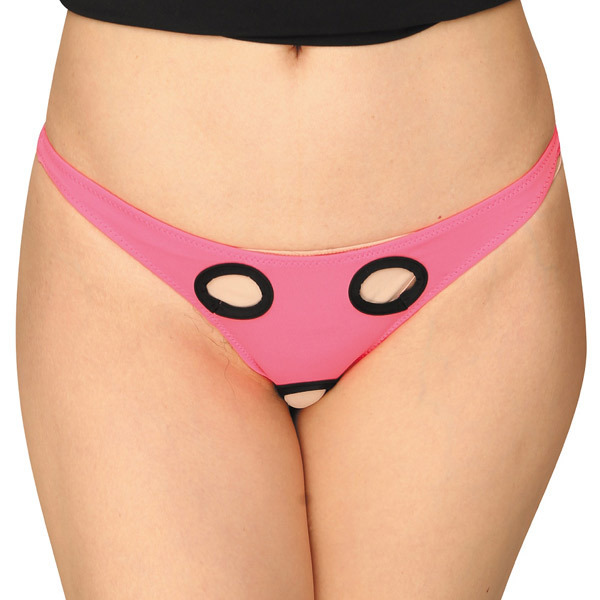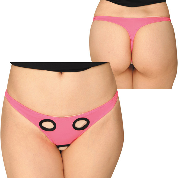 つるつるの肌触りと伸縮性に優れた2wayストレッチ素材の女性用オープンTバックです。覆面レスラーのようなユーモラスなデザインだからアンダーヘアやアソコが穴から顔を出し、ギュッと食い込むTバックとフロント・クロッチ部分の穴が相まって抜群のエロさとセクシーをアピールしてくれます!オープンクロッチ仕様なので着たままでもプレイが可能なセクシーデザイン。日本製ならではの安心の縫製で丈夫さ、着心地共に申し分なしです!