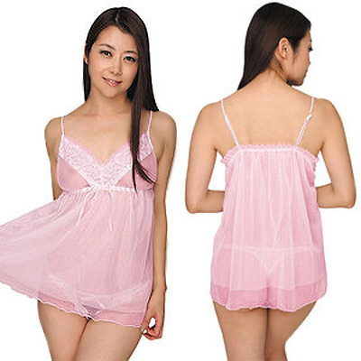 フラワーモチーフシースルーベビードール&ショーツ ピンク