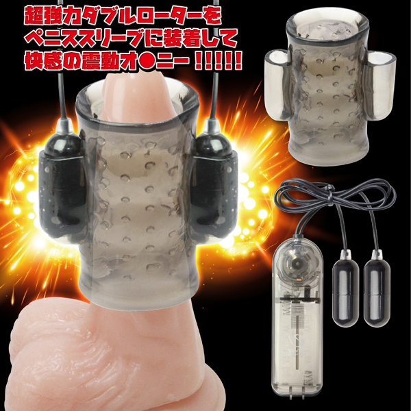 超激震ローターとイボイボ構造のペニススリーブで快感責め!ダブルローター付きの電動ペニスサック。伸縮性に優れたエラストマー素材使用で装着感バツグン♪亀頭やサオなど好きな位置に被せれば、Wローターの激しい振動で絶頂まで追い立てる!ローションで滑りをよくしてから扱けば、また違った快感もお楽しみいただけます。強弱はダイヤル調整式