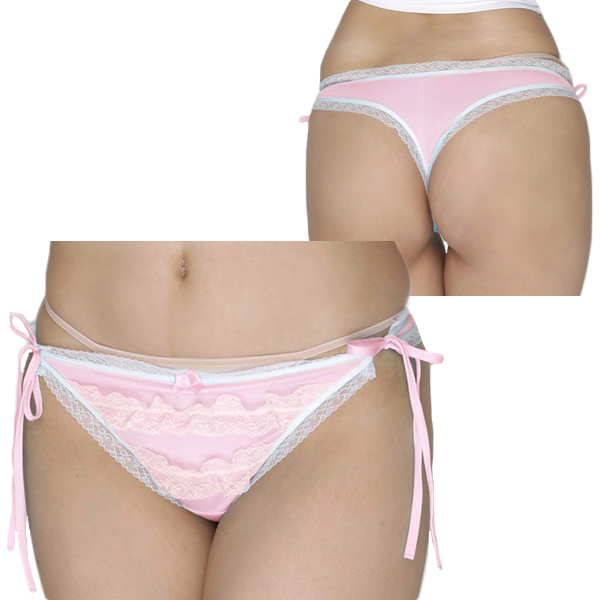 HOME > ランジェリー > ショーツ > 2段のフリルレースが可愛い光沢Tバック ピンク