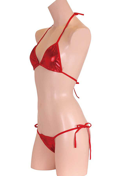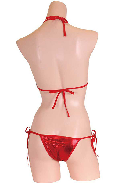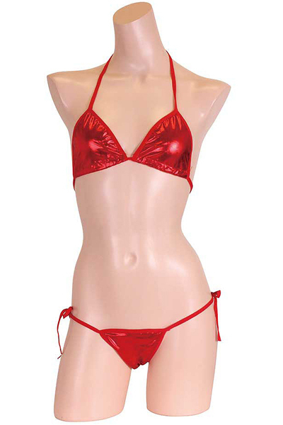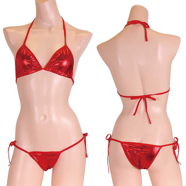 ギラギラと輝くメタリック生地が目を惹くビキニセット(赤)。夏も皆の視線も独り占め!ド派手なカラーで目立ち度100%なセクシービキニ♪上下ともに紐タイプなので着脱楽々、個人に合わせたサイズ調整が可能です。※こちらの商品は受注発注商品の為、ご注文から発送までに3、4営業日掛かる場合が御座います。