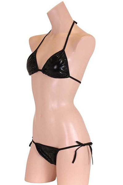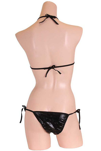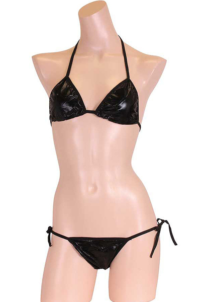 ギラリと光る黒のメタリック生地が格好いいビキニセット(黒)。重厚感のあるブラックと光沢感のある艶やかな生地が洗練された大人女性を演出!浜辺で目を惹く注目度抜群なセクシービキニです。※こちらの商品は受注発注商品の為、ご注文から発送までに3、4営業日掛かる場合が御座います。