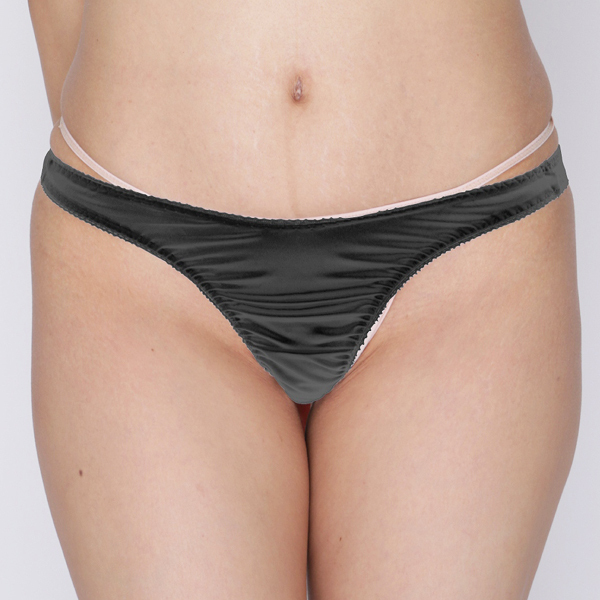 美しく滑らかな光沢で魅了する無地の日本製Tバック(黒)。特別な日にも普段用としても使いやすいシンプルデザイン!伸びの良いストレッチ素材が優しく素肌にフィットするセクシーTバック。