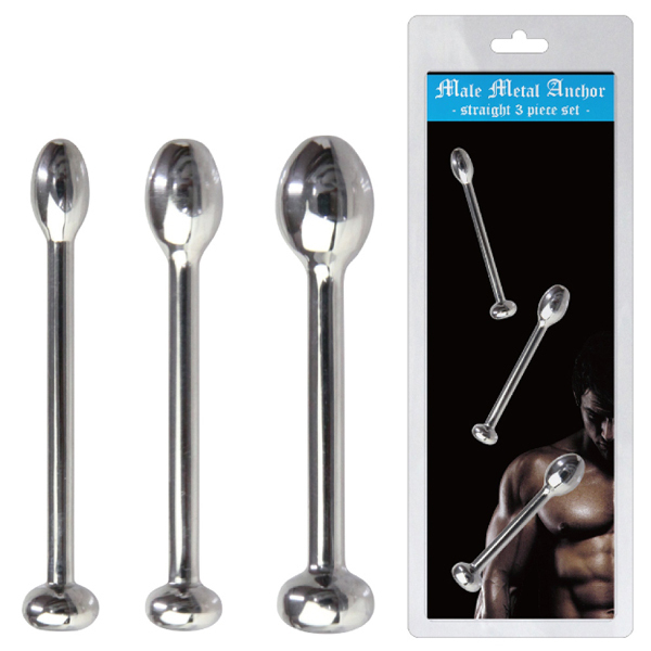 美しいメタルボディがまだ見ぬ快感を呼び起こす!個人に合わせたサイズで楽しめるストレートタイプのブジー3本セット。煮沸消毒可能な金属製