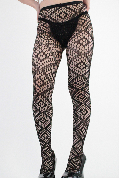 セクシーコーデのおともに!ダイヤ柄のストッキング(黒)。ダイヤ柄と大きめの網目が目を惹く、シンプルだけど個性も感じさせてくれる一足です♪日本製