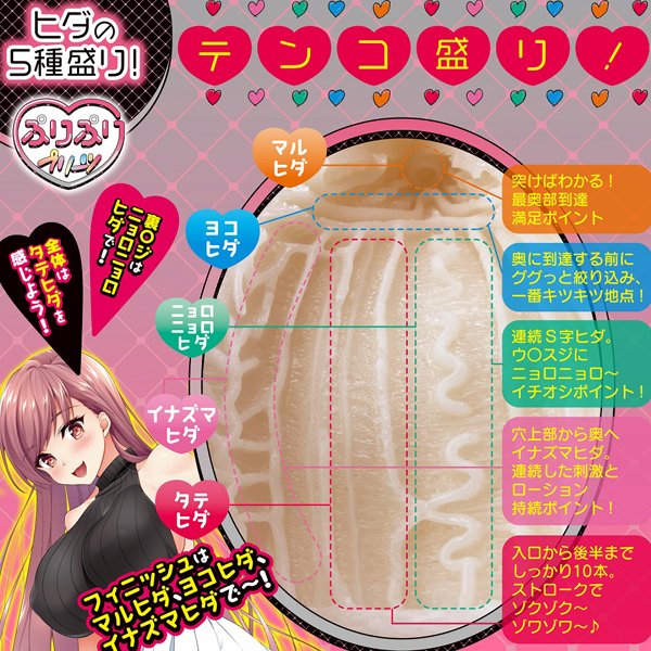 ヒダをこよなく愛する愛好家のために設計したヒダギミック満載の非貫通オナホ。締まりの良い内部には、挿入部から最奥まで5種類のヒダをバランス良く配置!それぞれの異なる刺激と弾力あるボディで、ぷりぷりっとしたプリーツヒダの快感を楽しめる♪ローション付属