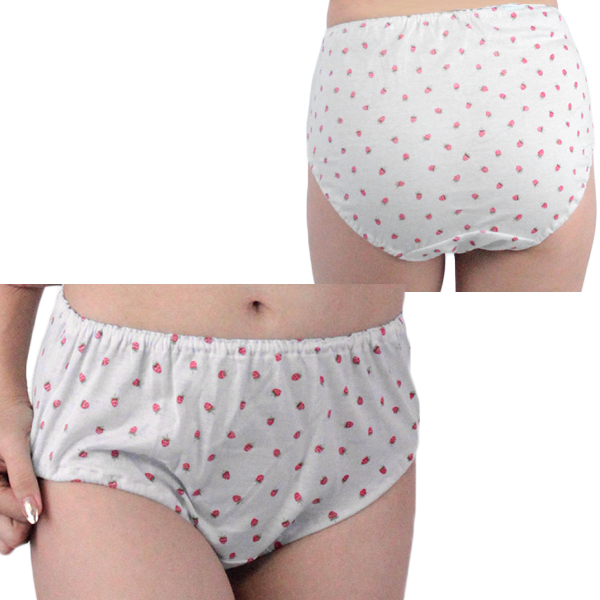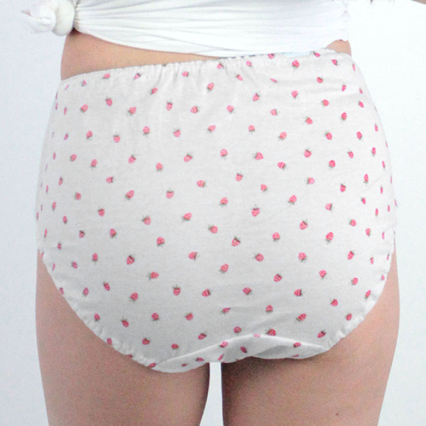 肌なじみの良いイチゴ柄コットン深履きショーツ ホワイト