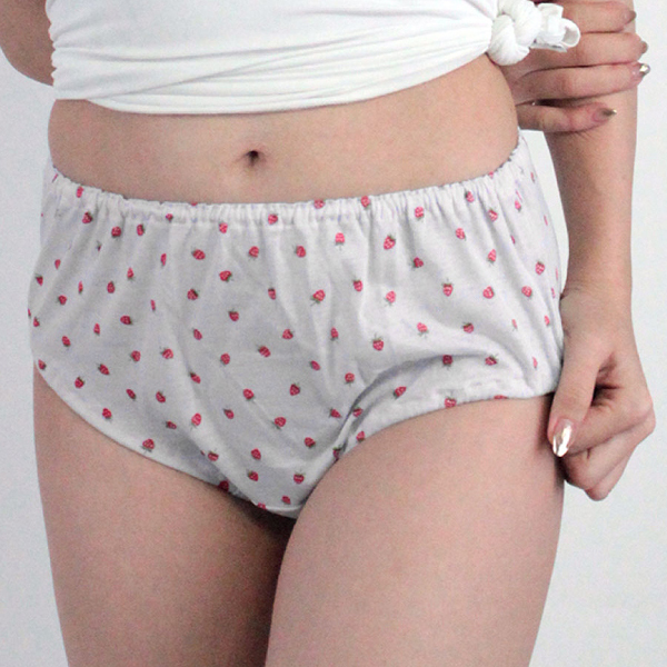 白の綿生地に小さなイチゴ柄をプリント!肌なじみが良く穿き心地が良いので、普段使いは勿論のこと、アニコスや制服衣装と組み合わせても抜群の可愛さを発揮してくれますよ♪◎ホワイト、Mサイズ