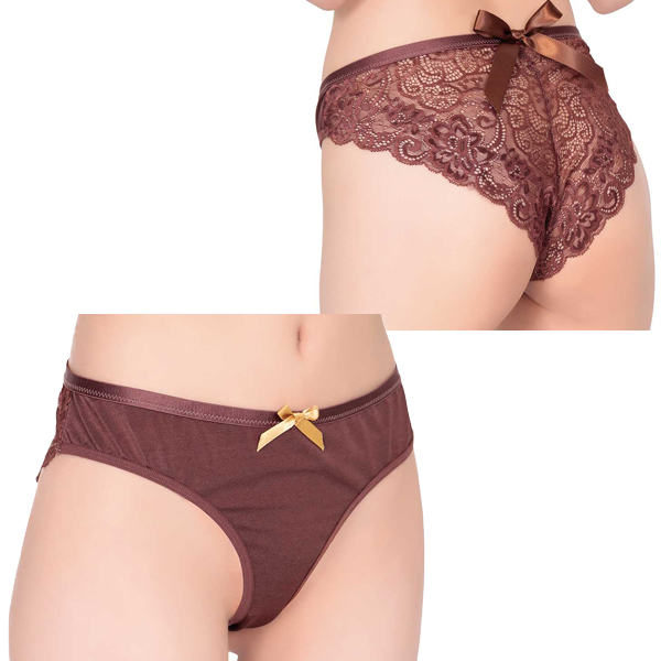 ペイズリーやフローラルをあしらったレースと大きめリボンのバックスタイルが超カワイイ!女性が喜ぶチョコレートの香りを付けた魅惑のランジェリー。バックの優雅なシースルーレースとサテンリボンでヒップを強調。バレタインにもピッタリなチョコレート香るパンティ。