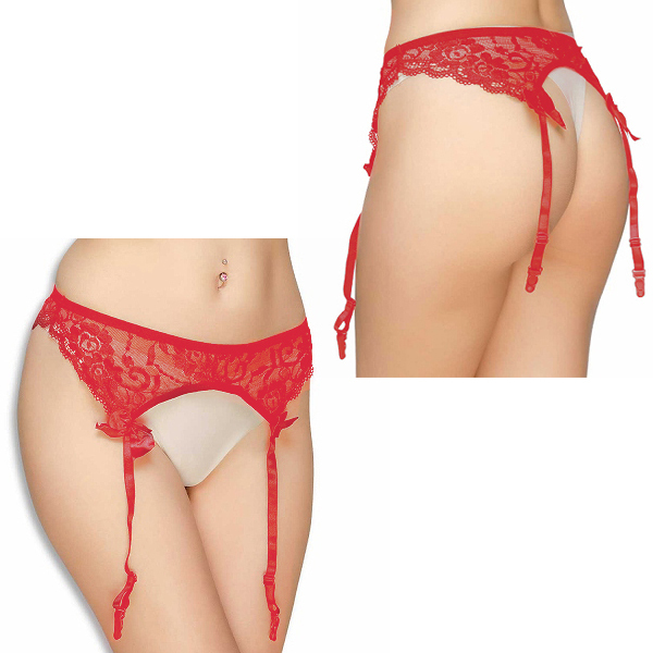 HOME > ランジェリー > ガーターベルト付 > 定番人気のフラワーレースガーターベルト (レッド)