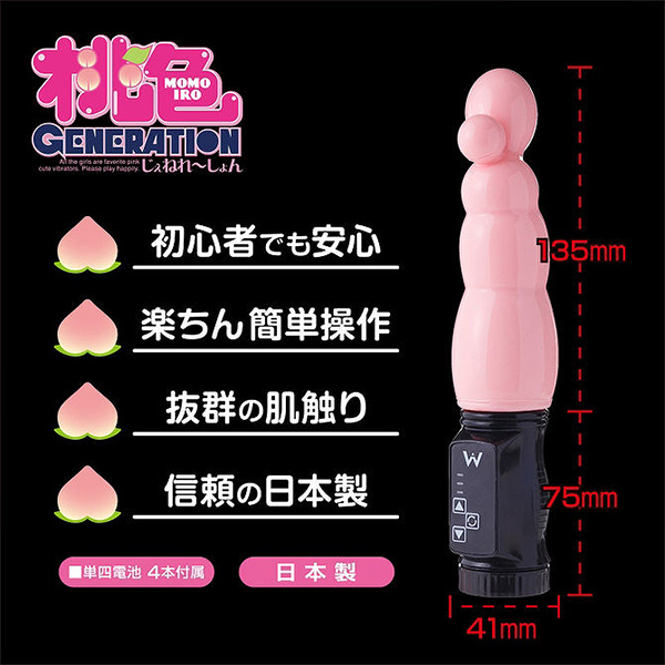先端に取り付けられた丸いぽっちが気持ちいい!Gスポット・Pスポットを的確に刺激できる女の子に優しいバイブ「桃色ジェネレーション」です。先端に取り付けられた丸いぽっちがGスポットやPスポットをピンポイントで刺激♪女性に優しく扱いやすい設計のバイブだから、敏感な気持ちいい部分をダイレクトに刺激しながら良い感じに遊べます。