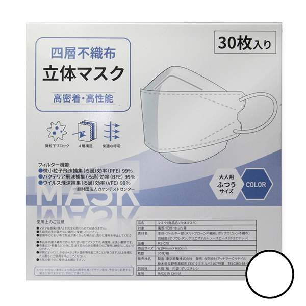 HOME > 特殊アイテム > 特選 > 四層不織布立体マスク 30枚入り (ホワイト)