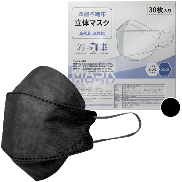 四層不織布立体マスク 30枚入り (ブラック)