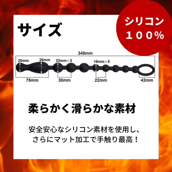 アナルにぬぷぬぷとインしながらズリュっと引き抜く!100%ピュアシリコンで安心安全な10個のビーズが連なった取っ手付きのアナルビーズです。初心者からマニアの方まで特殊な形状に病みつきになること間違いなし!一体成型品なので洗いやすく、いつでも清潔さを保てるのが嬉しいポイント♪適度な柔らかさもあるので初心者から上級者まで対応できる形状です。