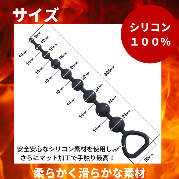 アナルにぬぷっとインしてズリュっと抜く!持ち手リング付きでハンドリングしやすい取っ手付きのアナルビーズです♪こちらのベータは9連ビーズで徐々にビーズ径が大きくなるタイプです。100%ピュアシリコンで作られているので安心安全!初心者からマニアの方まで特殊な形状に病みつきになること間違いなし♪