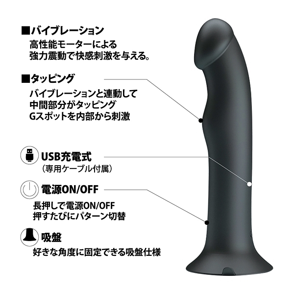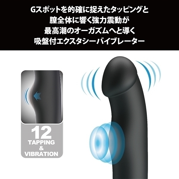 Gスポットを的確に捉えたタッピングと膣全体に響く強力震動が最高潮のオーガズムへと導く吸盤付エクスタシーバイブレーター●12パターンタッピング●12パターン強力震動●メモリ機能搭載●高品質シリコン素材●生活防水