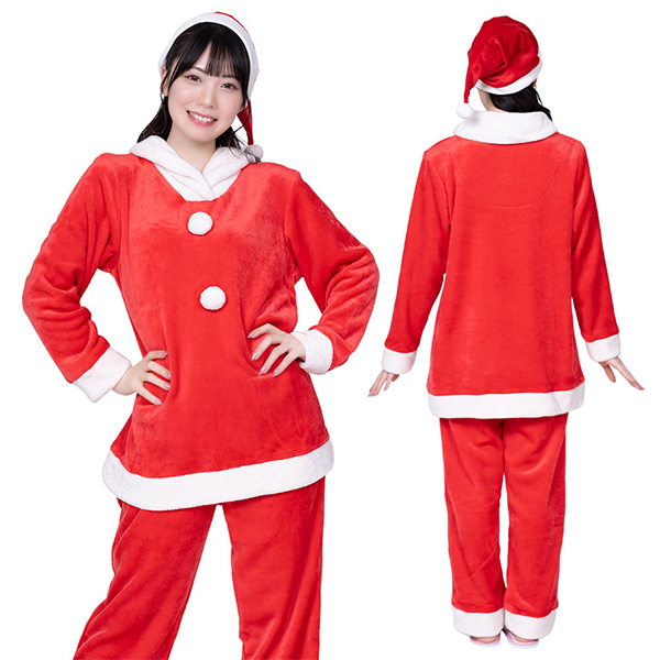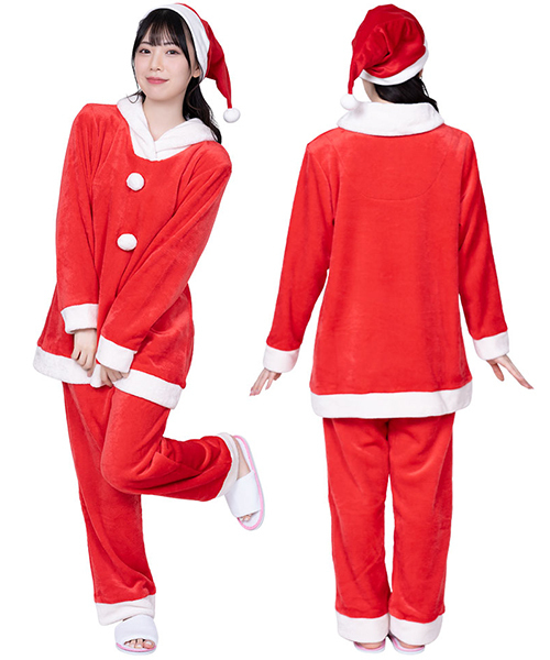 軽いのに密度の詰まったしっとりとしたふわふわ生地で、やさしく身体を包んでくれるサンタパジャマ。なめらか素材で肌触りも気持ちいいパジャマなので、普段の睡眠にも最適!着心地にこだわって作られているから座ったり、立ったり、寝転んだりしてもリラックスできるのも嬉しいポイント。イベントはもちろん、仲の良いメンバーとの女子会や旅行で着ていても盛り上がること間違いなし♪