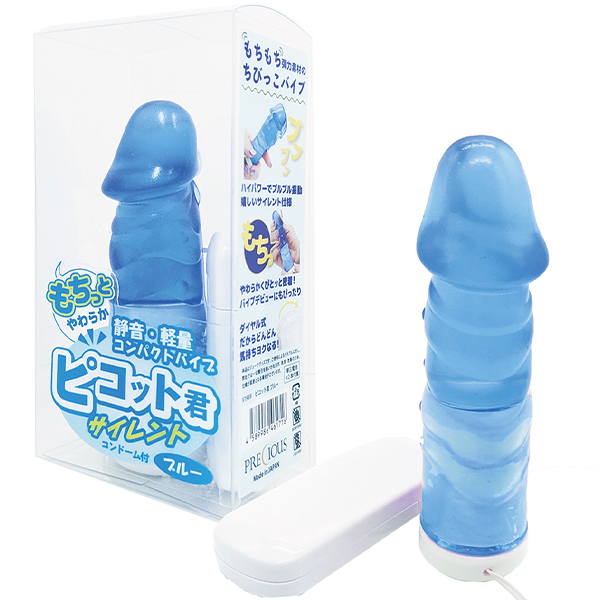 もちっと柔らか素材がピタっと吸着!あのポコチン君の頼れる親友、その名も ちびっこバイブ「ピコット君」。小さいながらもハイパワーでプルブル振動!ダイヤル式無段階調節でお好きな振動で遊べます。カリ高で、このもちもち弾力素材の柔らかさがたまらない!アルカリ電池&バイブカバー用のコンドーム同梱で即使用可能。バイブデビューにもピッタリな可愛いサイズ。●カラー:ブルー