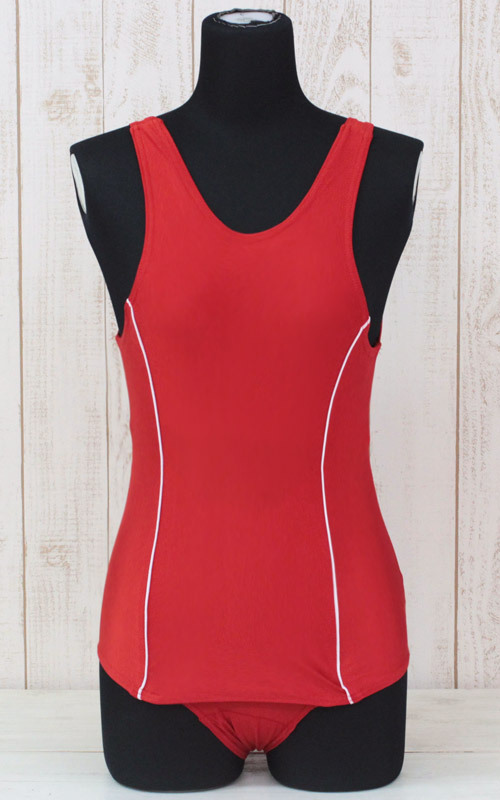 スク水コスプレの中でも未だ高い人気を誇る旧タイプに、赤色が仲間入りしました。腰に水抜きのついた定番の旧スクも、赤色だと新鮮!サイドに縦ラインを入れたこだわりデザインのスクール水着コスチュームです。※水洗い可、塩素系漂白剤による漂白不可、アイロンは中温で当て布使用、ドライクリーニング可、色落ちの可能性があります、ご注意ください。※こちらの商品は在庫の状況によりお届けまでに4日〜7日程度かかる場合がございます。