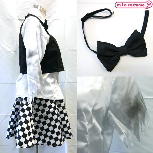 シャツ、スカート、ベスト、帽子、それに長さ調節が可能な蝶ネクタイが付いてこのお値段♪セット内容が充実したトランプマジシャン風のコスチュームです。これを着れば気分はホラー映画のゾンビドール!?モノトーンの洋風ゴシックなのでホラーにぴったり♪ハロウィン仮装や文化祭、コスプレ撮影会やイベント余興にもおすすめです!※汚れ風加工あり、石油系溶剤によるドライクリーニング可、塩素系及び酸素系漂白剤の使用禁止、アイロンは160℃を限度とし中温140〜160℃でかけます、日陰のつり干しがよい、洗濯の際は付属品を取り外してください、色落ちする場合があるので他のものと分けて洗濯下さい、全ての漂白剤の使用は避けて下さい、タンブラー乾燥は避けて下さい。※こちらの商品は在庫の状況によりお届けまでに4日〜7日程度かかる場合がございます。