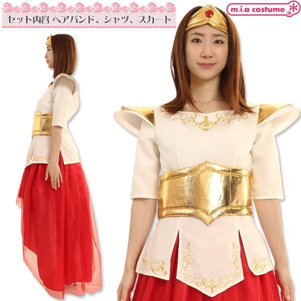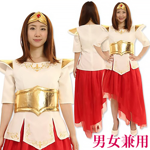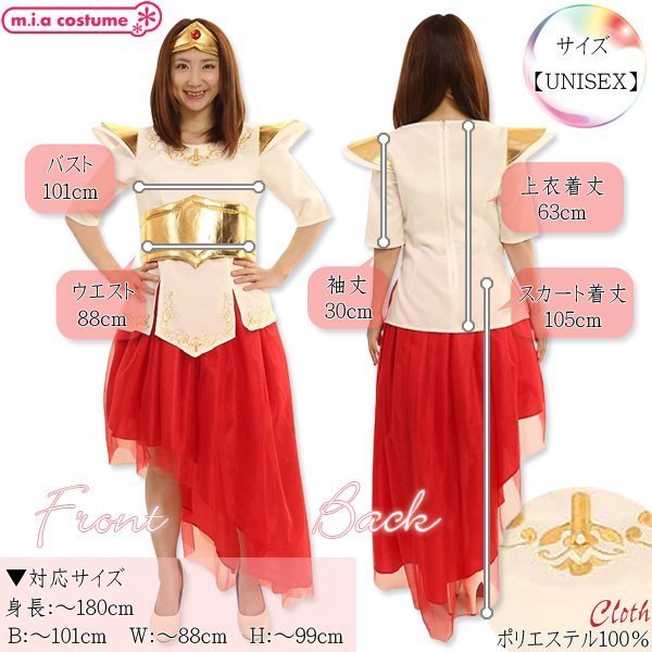 男女兼用サイズ:身長〜180cm・B〜101cm・W〜88cm・H〜99cm・着丈(上衣63cm・スカート105cm)・袖丈30cm) セット内容:上衣(背中心ファスナー)、スカート(ウエストゴム)、ヘアバンド 素材:ポリエステル100%