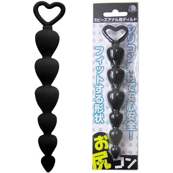 入れやすくって抜けにくい!ティアドロップ形の6連アナルスティック。シリコン製のアナルスティック(ブラック)は、先端が細くなった涙形のビーズ(13mm〜23mm)が6つも連なっています。柔らかくしなるので、腸内を傷つけにくく安全で安心。また、抜けにくい形状で優しくアナルにフィットします。持ち手は指を引っ掛けやすいハート型!