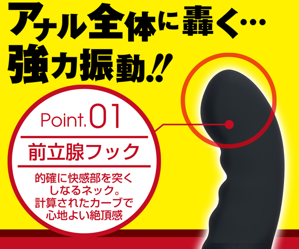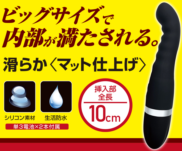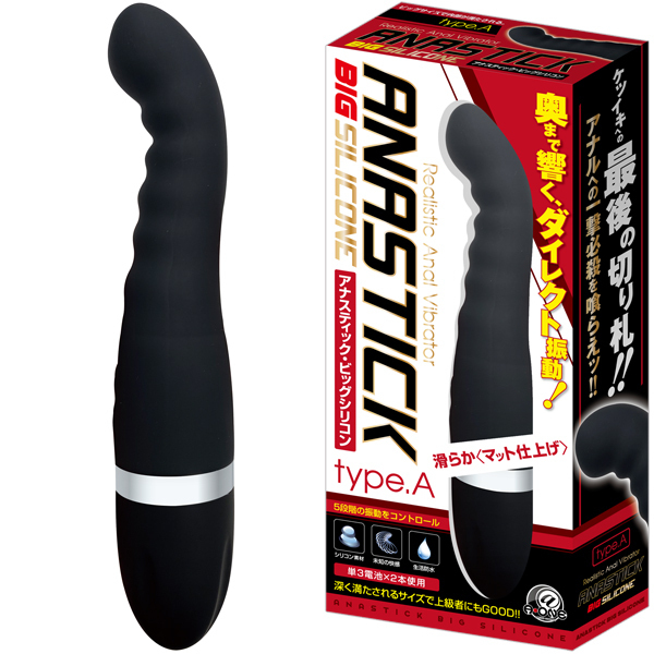 初心者にも挿入しやすい「アナスティック・ミニシリコン」が大きくなって登場♪波状ボディで腸壁を刺激しながら、フック形状の先端で前立腺を的確に狙い撃つ!5段階の強力振動が中で激しく響き渡る♪全長20.5cm、挿入部全長10cmのビッグタイプで充実感たっぷり!滑らかなシリコン素材で仕上げた生活防水仕様のアナル用電池式バイブ。単3電池を2本使用