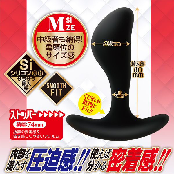 フィット感抜群で前立腺をプッシュするたまご型ヘッドが前立腺を圧迫&密着する!サラサラシリコン素材で滑らかな挿れ心地が前立腺を拡張&開発してくれます♪素材はサラサラシリコン素材で挿れ心地もよくお尻へのフィット感も抜群!挿れっぱなしでもOKなぐらいで安定感抜群のフォルムだから抜き差ししやすく扱いやすいです♪使えばわかるこの挿れ心地!こちらはMサイズで中級者でも納得の、亀頭大程度のサイズ感。ゆっくりほぐして挿入しよう♪