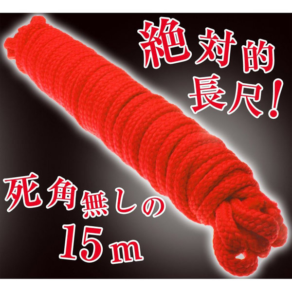 魅惑の世界の扉を開いてみませんか?SMビギナーさんでも使いやすい、柔らかなSM用ロープ(赤)。肌を傷めにくく、縛った痕も残りにくいソフト素材だから、初心者の方でも安心。長さもたっぷり15mあるので、色々な縛り方をお楽しみ頂けます。写真付きでわかりやすい亀甲縛りの説明書も付属して、届いたその日からどっぷりSMの世界にハマれる拘束グッズです。